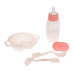 Самое главное, что ни одна из деталей не имеет острых краев, что делает набор абсолютно безопасным для детей и устойчивым во время игры. В комплект также входят такие необходимые аксессуары, как пустышка, контейнер для сухого молока, бутылочка, маленькая ложечка, вилка и градуированная миска.