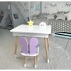Детский столик белый и стульчик фиолетовая бабочка. Столик с нишей для карандашей и раскрасок
