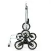 - Стальная тележка Treppensteiger Scala оснащена шестиколесной системой с колесами диаметром 13 см и имеет грузоподъемность 40 кг. Благодаря простой системе крепления колеса можно легко снять и помыть. Все, что нужно сделать это нажать на металлический фиксатор на колесе. Колеса большого диаметра подходят для неровной местности и легкого преодоления лестницы.