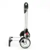 - Тележка оснащена складной ручкой, позволяющей вдвое уменьшить высоту конструкции или фиксировать высоту.