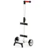 - Тележка оснащена складной ручкой, позволяющей вдвое уменьшить высоту конструкции или фиксировать высоту.