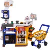 В комплекте есть аксессуары, такие как фрукты, овощи, упаковки и другие предметы, способствующие развитию воображения и социальных навыков через ролевые игры. Этот супермаркет помогает детям учиться основам торговли, чисел и общения. Отличный выбор для маленьких поклонников шопинга!