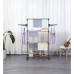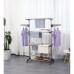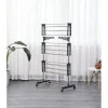 Сушилка органайзер для белья обладает дополнительной практичностью благодаря возможности изменять положение условных полок, чтобы лаконично выделить место под вещи разного размера. Еще одним плюсом служит форма ее конструкции. Благодаря тому, что каркас вытянут к горе, сушилку можно удобнее разместить у бытовых обогревателей, чтобы каждый край и полка получали необходимую порцию теплого воздуха. Этому же способствует и своеобразный шахматный порядок полок, чтобы ткани не размещались слишком плотно.