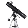 Рефлектор Ньютона Bresser Galaxia II 114/900 EQ (Carbon) – это компромисс между телескопом для планетарных наблюдений и телескопом для начальных наблюдений объектов Deep Sky. Особенно данная модель стала интересна после включения в комплектацию апертурного солнечного фильтра, что значительно расширяет возможности прибора. Благодаря достаточно большому 4,5 дюймовому основному зеркалу, телескоп собирает достаточно большое количество света, в то время как фокусное расстояние 900 мм позволит добиться большого увеличения даже с длиннофокусными очками. С данным телескопом Вы сможете различать более четкие контуры кратеров на Луне диаметром до 5 км, полярные шапки Марса, щель Кассини в кольцах Сатурна, звезды слабого свечения (до 12.4 звездных величин). Уран и Нептун будут уже в виде дисков. Туманности вокруг созвездий Лира и Орион и более далекие, находящиеся на расстоянии до тысяч световых лет от Земли, станут доступны Вашему глазу в виде достаточно контрастных пятен.