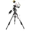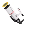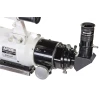 Благодаря короткому фокусу и большой светосиле, данная модель будет очень интересна для наблюдения протяженных объектов более слабого свечения, а также для так называемых экскурсий звездным небом. Линзы телескопа изготовлены из специального ED-стекла, что обеспечивает исключительно высокое качество изображения с минимальной цветовой аберрацией. Именно это позволяет получать светлые и четкие изображения наблюдаемых объектов с правильной цветопередачей, как при визуальных наблюдениях, так и при астрофотографии. Линза объектива обладает улучшенным многослойным покрытием, что способствует повышению яркости и контрастности изображения. Комплектация оптической трубы включает: оптический видоискатель, диагональное зеркало, длиннофокусный окуляр SuperPlossl SPL 26 мм, с которым достигается увеличение 18 крат. Максимальное полезное увеличение 204 крат достигается благодаря замене окуляра другим (не идут в комплекте). Вы также можете исследовать небо днем, с помощью солнечного фильтра, наблюдая солнечные пятна, затемнение. (Предупреждение: никогда не направляйте телескоп на Солнце без солнечного фильтра).