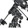 Данная модель интересна тем, что по приемлемой цене теперь доступны планетарные наблюдения и солнечной активности с помощью одного телескопа. Объектив телескопа является ахроматом с относительным отверстием 1/4.5, благодаря чему телескоп характеризуется действительно высокой светосилой для наблюдения удаленных объектов космоса, что является преимуществом для астрофото. Линза объектива обладает улучшенным многослойным покрытием зеленого цвета, что способствует повышению яркости и контрастности изображения. Объектив имеет бленду для защиты от боковых засветок и выпадения росы. В комплектации поставляется специальный солнечный фильтр, защищающий глаза от проникновения ультрафиолетового, инфракрасного и видимого сверхяркого солнечного излучения, пропуская лишь количество видимых световых волн, достаточное для формирования качественного изображения Солнца. Фильтр тестирован независимой организацией качества продукции и имеет европейский сертификат соответствия CE. Труба телескопа выполнена в современном стиле из алюминия с наружной отделкой карбоновым волокном, которое призвано с одной стороны сделать конструкцию максимально легкой, а с другой стороны максимально устойчивой к ударам. Для жесткого крепления объектива и фокусера труба скреплена металлическими ободами. Телескоп оснащен фокусером с посадочным диаметром под очки 2” (для использования очков стандарта 1,25” в комплекте есть переходник). Это позволяет использовать широкоугольные очки, чтобы получить большое поле зрения при наблюдениях протяженных и звездных полей. Два очка в сочетании с линзой Барлоу дают широкую вариативность прибавок. Телескоп оснащен точечным искателем Red Dot. Для большего удобства наблюдений (особенно ландшафтных) в комплект входит диагональное зеркало. Телескоп установлен на жесткой монтировке EQ-3 – экваториального, германского типа. Монтирование оснащено механизмами тонких движений по обеим осям. Благодаря использованию червячных передач в механизмах тонких движений возможна моторизация монтирования (и установка системы автонаведения). Координатные круги позволяют наводить телескоп на объекты с использованием системы экваториальных координат. В комплектацию входит адаптер для смартфона (планшета). Адаптер крепится на выбранном очке и позволяет производить фото и видеосъемку главной или передней камерой гаджета. Гладкая тыльная сторона смартфона надежно крепится с помощью множества присосок адаптера (при рифленой тыльной поверхности смартфона рекомендуется использовать переднюю камеру).