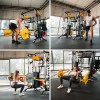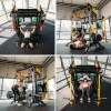 Тренажер CYKLON X С ОБОРУДОВАНИЕМ HMS Cyklon X – это революционный атлас упражнений, позволяющий комплексно тренировать все части мышц без необходимости менять оборудование. Этот тренажер заменяет целый тренажерный зал, обеспечивая высокое качество и безграничные возможности для тренировок. Он предлагает не менее восьми вариантов погрузки - штатив, свободный вес, подвижные руки, резиновые ленты, подъемник, мостовой кран, использование веса собственного тела и даже комбинация выбранных весов. Комфорт и безопасность Cyklon X создан из стали высокого качества, что обеспечивает его необычайную прочность и долговечность даже при интенсивном использовании. Стабильная основа гарантирует полную безопасность во время любых упражнений, устраняя риск качания тренажера. Подъемники и мостовой кран двигаются плавно и бесшумно благодаря точно подобранным подшипникам. Безграничные возможности для тренировок Тренажер спроектирован таким образом, чтобы пользователь мог тренировать на нем буквально все группы мышц. Cyklon X включает в себя Верхний кран Смита – с интегрированной штангой, позволяющей выполнять изолированные упражнения с большим весом. Благодаря системе безопасности вы можете тренироваться до тех пор, пока ваши мышцы не разрушаются. независимые стеки - оба по 100 кг, что позволяет изменять нагрузку с шагом 5 кг. Опоры безопасности - отлично подходят для становой тяги. Регулируемый фиксатор бедра - обеспечит стабильность во время работы на тренажере. (для стека) – позволяют увеличивать нагрузку с помощью свободных весов до 0 кг. 25 кг с шагом в 25 кг! Четыре штыря для хранения груза - размещают ваши тарелки и поддерживают порядок. Набор зажимов - для надлежащей фиксации весов подъема, хват для штанги, канат (тренировочный канат), треугольный хват, двойной хват, цепи и хват для хранения грифа Защита для хвата – защищает вашу шею и шею Полосы сопротивления – идеально подходят для общих тренировок и аэробных тренировок. Закрепите их на специальных регулируемых перекладинах! Тренировочные ленты для голеностопных суставов - позволяют легко разнообразить тренировку ягодичных мышц, приводных и отводных мышц. Складной коврик - адаптируется к изгибу позвоночника, обеспечивая большой комфорт при выполнении упражнений на танцполе. новые техники. Важно, что все аксессуары имеют свое собственное место – от штифтов для пластин до подвижных кронштейнов, и это гарантирует, что ваше тренировочное пространство остается организованным и готовым к работе. Примечание: Если вы используете внешний грифон, минимальное расстояние между секциями грифа должно составлять 134 см. Спецификация: Размеры изделия (в зависимости от установленных компонентов) Длина: 164 – 263 см Ширина: 223 – 250 см Высота: 221 см Расстояние между 2