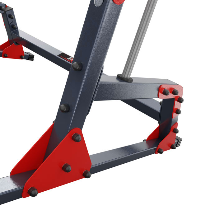 Кран был разработан таким образом, чтобы быть стабильным даже при очень больших нагрузках на штангу. Двойная рама у основания и дополнительные укрепления гарантируют, что устройство не наклоняется и не падает во время упражнений.