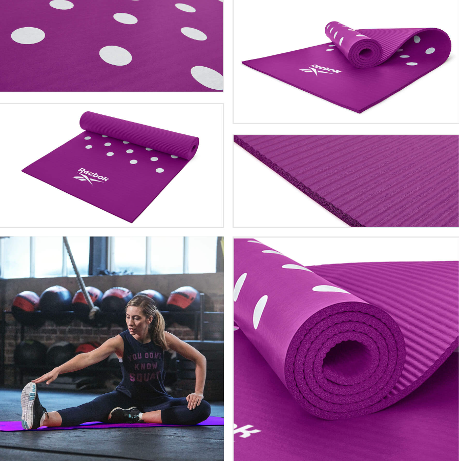 Фиолетовый тренировочный коврик Reebok 7 мм пригодится всем, кто ценит комфорт выполнения упражнений. Благодаря тому, что он толще стандартного, он обеспечивает максимальную защиту и стабилизацию суставов, поддерживая вас в работе над правильной техникой. Независимо от того, занимаетесь вы йогой, пилатесом, бегаете или просто делаете несколько кранчей вечером, тренировочный коврик станет для вас очень полезным и вы оцените его преимущества. Коврик изготовлен из пены NBR. Текстурированная поверхность сцепляется с полом для максимальной стабильности во время тренировки. Вы полностью сосредоточитесь на точности выполнения упражнений, не опасаясь, что с ковриком что-нибудь случится. Дополнительным преимуществом является легкость чистки коврика.