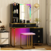 Описание Туалетный столик Costway Vicci с пуфом + зеркало LED черный