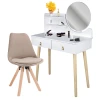 Отзывы о Туалетный столик Jumi Scandi с зеркалом (кожаные ручки) белый + стул Saida бежевый