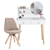 Описание Туалетный столик Jumi Scandi с зеркалом (кожаные ручки) белый + стул Saida бежевый