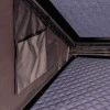 Под матрасом есть антиконденсатный коврик. Это специальный слой, задачей которого является ограничение конденсации водяных паров. При использовании палатки, особенно когда наружная температура ниже, а внутри теплее, влага в виде водяного пара начинает конденсироваться на холодных поверхностях, в том числе на материале крыши палатки. Это может привести к образованию влаги, плесени и грибков, что может негативно повлиять на состояние палатки и комфорт использования.