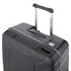 Чемодан оснащен четырьмя полноповоротными спаренными колесами с возможностью независимого разворота каждого колеса на 360°. Системой предусмотрено равномерное перераспределение нагрузки на колесо, что, в свою очередь, способствует плавному качению и маневренности чемодана, прикладывая при этом минимум усилий. Колеса изготовлены из высокотемпературного термопластического полиуретана (TPU). Материал имеет прочность больше пластика, гибкость силикона, а также имеет повышенную устойчивость к перепадам температур. Отличительной особенностью колес из TPU материала является снижение шума до минимума при качении чемодана по неровной поверхности. Благодаря стойкости к истиранию, материал колес отличается длительным сроком эксплуатации.