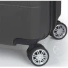 Чемодан оснащен четырьмя колесами с возможностью независимого разворота каждого колеса на 360°. Система предполагает равномерное перераспределение нагрузки на каждое колесо, что в свою очередь способствует плавному движению и маневренности чемодана, прилагая при этом минимум усилий. Колеса изготовлены из высокотемпературного термопластического полиуретана (TPU). Отличительной особенностью колес из TPU материала является снижение шума до минимума при движении чемодана по неровной поверхности. Благодаря стойкости к истиранию, материал колес отличается длительным сроком эксплуатации. Чемодан легкий, маневровый и удобный для транспортировки.