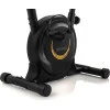 Седло с мягким наполнителем обеспечивает комфорт во время езды. Регулировка высоты в диапазоне 5 градусов позволяет точно подстроиться под рост занимающегося человека. Магнитное сопротивление управляется с помощью ручки, расположенной на рулевой колонке. Его 8 уровней регулирования позволяют регулировать нагрузку в соответствии с уровнем подготовки и индивидуальными потребностями спортсмена. Педали имеют нескользящую поверхность и регулируемые ремешки для стабилизации ног во время тренировки. На заднем стабилизаторе есть поворотные накладки, позволяющие выровнять велосипед на неровных поверхностях.