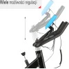 Конструкция велосипеда была разработана таким образом, чтобы оборудование было легко и прочно. Два профиля, соединяющих основания, обеспечивают устойчивость, а выравнивающие ножки позволят вам регулировать настройки к земле. Возможность регулировать седло по вертикали и горизонтали позволит подстроить его настройку под рост тренажера. Для еще большего комфорта высота руля также регулируется.