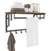 Настенная вешалка Bonro имеет стойкую полку, на которую мы можем поставить цветы в горшках, зонтики, рюкзаки, шляпы, кепки или просто разместить наши фотографии в красивых рамках. Кроме того, изделие оснащено 5 крючками для хранения пальто, курток, сумок или ключей и штангой, на которую можно повесить куртки и пальто, размещенные на вешалке для одежды. Металлический каркас обеспечивает стойкость мебели.