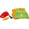 Спортивный набор содержит все необходимое для игры, то есть ворота, колья для крепления в земле и мяч с насосом. Вдобавок будут цветные жилеты для маленьких футболистов и маркеры для игры. Наибольшей приманкой набора станет специальная мишень для тренировки меткости. Она имеет вырезанные отверстия в местах, в которые малыши должны попасть.