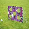 Уникальным преимуществом модели является тренировочная панель для ударов, которая легко крепится к воротам с помощью специальных липучек. На панели предусмотрено пять круглых отверстий диаметром 41 см – через них игрок должен забить мяч. Каждому отверстию присвоено определенное количество очков, что позволяет совмещать тренировки с игровыми элементами и соревнованиями. Такой подход эффективно развивает точность, концентрацию и азарт.