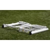 Ворота мають задню частину, яка легко складається, тому їх можна компактно зберігати після гри. Зручна система монтажу дозволяє зібрати конструкцію за лічені хвилини, а в комплект входять усі необхідні елементи — сітка, кілки, гачки для кріплення та ключі.
