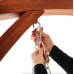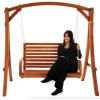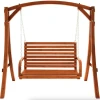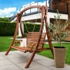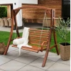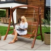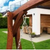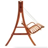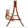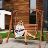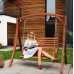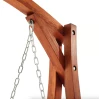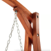 Сидіння підвішене на оцинкованих ланцюгах, що забезпечують плавне гойдання та захищені від корозії. Міцна дерев'яна конструкція і широка стійка основа гарантують безпечне використання навіть за максимального навантаження до 200кг.