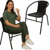 Ротангові плетені стільці для дачі, вулиці чи тераси включають можливість штабелювання (складаючи одне на інше). Їх конструкція варена (безгвинтова) та покрита порошковою фарбою, що безсумнівно забезпечить багаторічну експлуатацію. Компактна форма крісла дозволяє його зберігати будь-де, не займаючи багато місця.