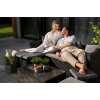Кутовий диван в комплекті меблів Болонья має додаткову функцію, що дозволяє трансформувати його в зручне лежак. Одна з частин сидіння оснащена механізмом, який дозволяє його піднімати і встановлювати під кутом, щоб сидіння забезпечувало підтримку спини користувача, що лежить на дивані. Багатофункціональний предмет меблів, який дозволяє комфортно відпочити в напівлежачому положенні та краще розслабитися на природі.