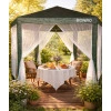 Садовий павільйон намет з москітною сіткою Bonro B-1024 зелений — це просторий шестигранний павільйон, який стане чудовим рішенням для облаштування комфортної зони відпочинку у саду, на подвір’ї або дачній ділянці. Він ефективно захищає від сонця, вітру та легкого дощу, дозволяючи насолоджуватися відпочинком на свіжому повітрі у колі родини та друзів.