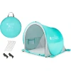В комплекті є кілки, які фіксують намет під час сильних поривів вітру. Також для надійної фіксації на пляжі використовуються спеціальні кишені, які наповнюють піском. Тож намет стане вашим нерозлучним супутником під час поїздок на природу, пляж чи дачу, де ви зможете відпочити, а ваші діти весело та безпечно провести час.