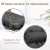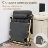 М’який матрас рівномірно підтримує ноги, торс і спину, зменшуючи навантаження на м’язи. Подушка-підголівник виготовлена з приємної дихаючої тканини та забезпечує додатковий комфорт для шийного відділу. Анатомічні підлокітники доповнюють відчуття зручності під час тривалого відпочинку.