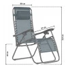Шезлонг можна зафіксувати в положенні лежачи і сидячи за допомогою фіксаторів з обох сторін під підлокітниками.Складаний шезлонг легко зберігати, і ви можете взяти його з собою у відпустку, на пікнік або на пляж.