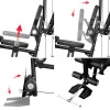 У комплекті — повний набір аксесуарів: дві одинарні ручки D-handle, ручка для щиколотки, ланцюг з карабіном, пряма коротка ручка та довга похила штанга — усе необхідне для різноманітних варіантів хвату та вправ.