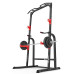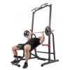 Силова станція має регульовані тримачі для штанги. Завдяки їм, дома можна виконувати комплексні силові тренування: жим лежачи, станову тягу або присідання зі штангою.