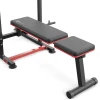 Завдяки складаній прямій лаві ви можете виконувати такі вправи, як скручування, мах гантелями або жим штанги. Запобіжні гачки дозволять зручно покласти штангу та безпечно завершити тренування. У складеному положенні лава служить опорою для спини під час тренувань з використанням штанги для преса. Зафіксуйте з'єднання, розміщені з обох боків лави, полегшать вам тренування з обтяженнями та дозволять швидко змінювати навантаження на перекладині. У комплекті з поручнем два пружинних затискача, які ефективно захистять навантаження від зісковзування зі штифтів. Вибравши стаціонарну силову станцію з вбудованою тренажерною лавою, ви заощадите місце у своїй квартирі та отримаєте багатофункціональну тренажерну станцію.