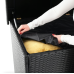 Внутрішній простір ящика Varise обладнаний водонепроникною текстильною кришкою, яка ефективно захищає вміст від пилу, комах і бруду. Кришка легко кріпиться на липучки, а завдяки якісній блискавці ви отримуєте швидкий доступ до речей без зайвих зусиль. При потребі її можна легко зняти й випрати. Така багаторівнева система захисту - справжня перевага, коли йдеться про зберігання подушок, пледів або речей, чутливих до вологи. Компактність, функціональність і стиль в одному корпусі - усе, що потрібно для впорядкування простору з комфортом. Замовляйте садовий ящик Varise вже сьогодні - і створіть простір, у якому все на своєму місці, а ваш відпочинок безтурботний у будь-яку пору року!