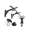 Турнік оснащений спеціальною ручкою, на яку можна повісити боксерську грушу або ремені. Тримач для груші або ременів збільшує можливості виконання різноманітних вправ, крім силових тренувань ви також можете займатися аеробними вправами. У комплект входить карабін, на який можна повісити грушу або ремені.