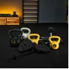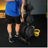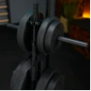 Кожен рівень витримує до 100кг. Додаткові кільця-стопори на стрижнях запобігають прямому зіткненню млинців із рамою та приглушують звук.