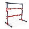Високоякісна стійка для обтяжень, яка допоможе тримати домашній спортзал в порядку. Сім перекладин для підвішування обтяжень, полиця для гантелей і спеціально розроблені гачки, щоб утримувати до чотирьох грифів.