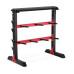 У верхній частині стійки Hop-Sport HS-1007A розміщена металева полиця для гантелей довжиною 100см, яка дозволяє зручно та компактно розташувати кілька пар гантелей різної ваги. Завдяки оптимальній ширині і надійній конструкції вона забезпечує легкий доступ до інвентарю, не займаючи зайвого простору. Полиця ідеально підходить для впорядкування гантелей, створюючи комфортні умови навіть у невеликих тренувальних зонах.