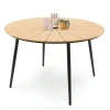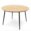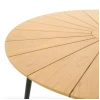 Кругла стільниця виготовлена з надзвичайно міцного полівуду, стійкого до різноманітних погодних умов, яким постійно піддаються садові меблі - дощу, вологи, високих і низьких температур, інтенсивного сонячного світла. Додатковою перевагою полівуду є його зовнішній вигляд, який ідеально імітує природну структуру деревини. Щоб підкреслити візуальну привабливість матеріалу, панелі з поліуретанового дерева скомпоновані в декоративну композицію з круглим елементом посередині.