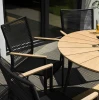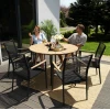 Ніжки столу Palermo регулюються по висоті. Ця практична функція дозволяє регулювати висоту столу відповідно до ваших потреб, а також компенсувати будь-які нерівності поверхні, які часто виникають у саду. Стійке розташування обіднього столу є дуже важливим, оскільки воно запобігає розхитуванню стола і забезпечує безпечне розміщення столового посуду на стільниці.