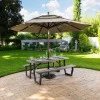 Стільниця та лавки виготовлені з поліетилену високої щільності (HDPE), що робить їх дуже міцними та легкими в догляді. Якщо ваша дитина проллє сік або випаде ложка, якою вона накладає соус, просто протріть її ганчіркою, і від інциденту не залишиться і сліду. Крім того, на стільницю та лавки нанесено захисне покриття від ультрафіолету, що робить їх більш стійкими до пошкоджень. Також передбачено місце для садової парасольки. Таким чином, ви можете встановити її в будь-якому місці і постійно насолоджуватися приємною тінню. Каркас виготовлений зі сталі з порошковим покриттям, що захищає його від іржі. У складеному вигляді набір повністю плоский, тому ви можете легко прибрати його на зберігання, коли літній садовий сезон закінчиться. Ви самі вирішуєте, як ви хочете використовувати свій садовий простір.