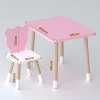 Основні характеристики Стіл прямий 46х60х45 і стілець мордочка медведика 26.5х26х25, столик та стільчик для дівчинки, рожевий з білим