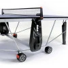 ВЕЛИКІ КОЛЕСА З ГАЛЬМАМИ: Столи для тенісу Cornilleau мають великі подвійні колеса. Така конструкція покращує кочення та стійкість столу. Подвійні гальма забезпечують чудову стійкість та безпеку під час гри. Ця функція також особливо корисна під час зберігання столу на дещо нерівній поверхні.