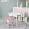 Опис Столик хмаринка з зручною нішею 54х68х50 і стільчик корона 26.5х26х25, стіл та стілець в дитячу, білий з рожевим