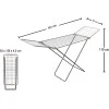 Загальна довжина струн сушарки становить двадцять метрів, що дає змогу одночасно висушити велику кількість білизни. На крайніх струнах відкидних секцій зручно сушити довгу білизну. Максимальне навантаження до дев'яти кілограмів. Підлогова сушарка для білизни проста у використанні та займає мінімум місця в складеному стані.