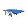 Тенісний стіл для закритих приміщень. Як матеріал для ігрової поверхні використовується спеціально оброблена древесностружечная плита (ДСП) товщиною 18 мм. На ДСП нанесено спеціальне антиблікове пластикове покриття синього кольору. Ігрова поверхня оснащена металевою рамою (прямокутний профіль 30 * 20 мм). Тенісний стіл базується на компактній зручній візку, виготовленої з металевого трубчастого профілю діаметром 25 мм з поліефірним покриттям. Конструкція столу дозволяє тренуватися в поодинці. Стіл легко переміщується на 4-х здвоєних колесах діаметром 107 мм, 2 колеса маневрені. Стіл комплектується сіткою.