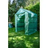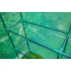 На фото представлена простора теплиця WALK-IN із двома секціями по 4 полиці з кожного боку. Вона має зелене сітчасте покриття, яке пропускає світло, але захищає від ультрафіолету. Центральний вхід із застібкою-блискавкою дозволяє легко доглядати за рослинами.