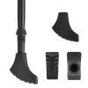 6. **Наконечники**: Трекінгові палиці можуть мати різні типи наконечників, які підходять для різних умов, включаючи гумові для асфальту та карбідні для грунтових шляхів та скель.